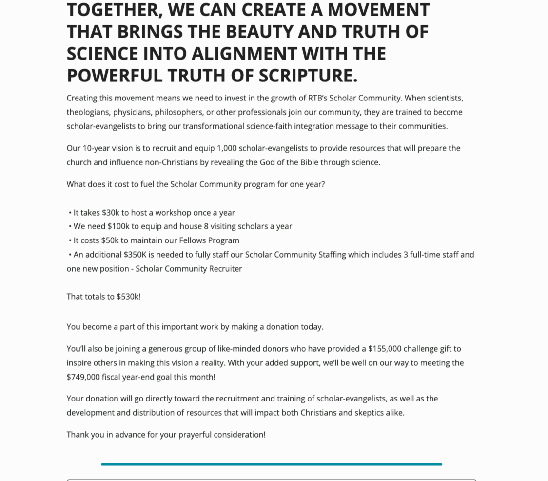 We believe that using a plain-text donation page rather than stylized campaign graphics for RTB’s FYE campaign will achieve an increase in donor conversion rate because it positions the copy/value as being from a human..
