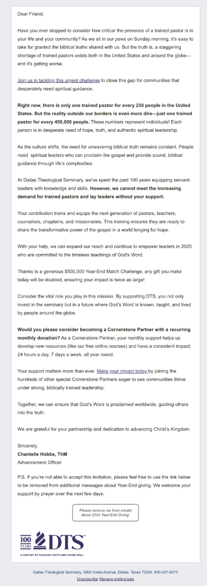 We believe that using ease language for people who receive the email will achieve more clicks because they will be more encouraged to become a monthly donor.