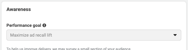 - If you're looking to reach far more people in your target audience with at least one ad impression, prioritized to whomever the platform believes is most likely to consume the ad and remember it, you should use the "Awareness > Maximize ad recall lift" campaign setting.